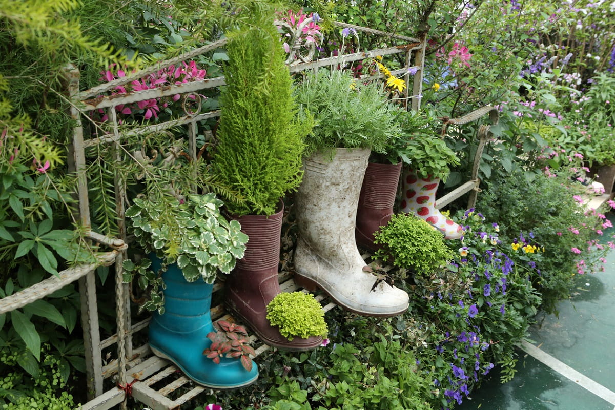 Traditional garden pots made of thick plastic, glazed terra-cotta, or wood are a good go-to because they retain moisture well, but truly, anything (from burlap sacks to birdcages) can be a plant container. To plant a “Garden On-the-Go,” select a container that “goes”—like an old wagon, a tire, a large toy truck, or even shoes! The only “must” is that your container have proper drainage (drilling, cutting, or punching a few holes will likely do the trick).