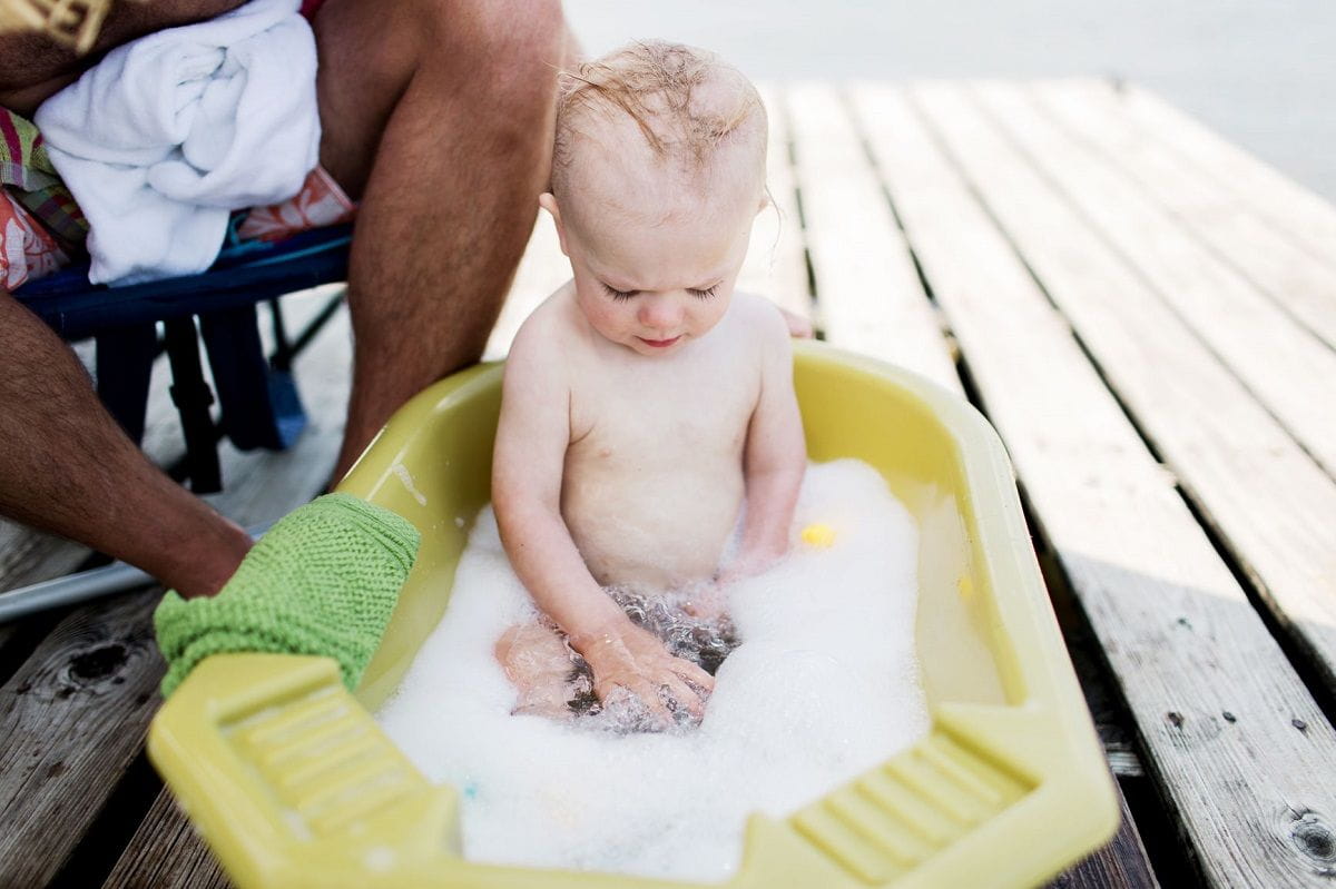 Those effervescent, rainbow-hued soap bubbles can awe and amaze infants—especially when they pop with the slightest touch! A whole bathtub full of them provides a fun, fizzy experience that babies might not have experienced before (grab your phone so you can record those adorable baby giggles).
