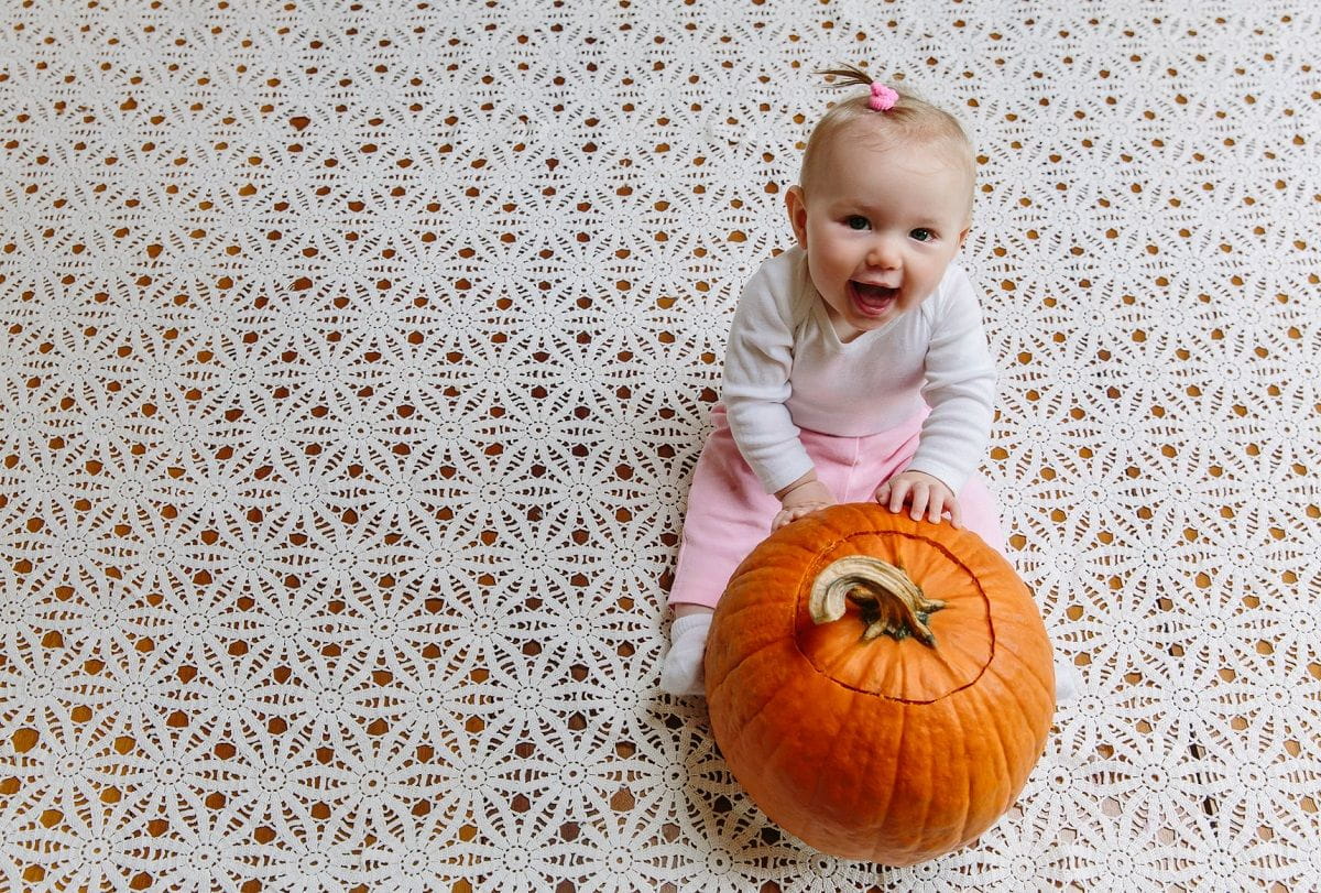 That’s why a crucial part of our infant curriculum includes plenty of opportunities to feel, grab, and smush all kinds of fun new textures. And this month, we’re pulling out an October classic: pumpkins!