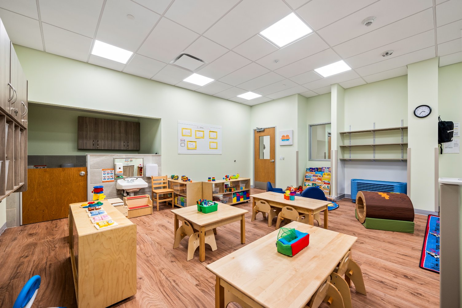 This age is filled with so much wonder and curiosity. That’s why we offer a ton of books and toys and bring artwork down to kids eye level. Children in discovery preschool also begin to learn how we all work together in a classroom. Simple math and science, pretend play, and group play help them get used to a more structured school setting.
