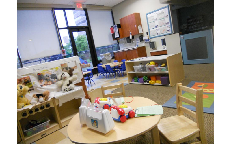 When you walk into one of our pre-K classrooms, you’ll see artwork and writing displayed around the room. Labels are everywhere to help kids connect letters with words. You’ll also see pictures on the walls that reflect the families in our community. Your child will also deepen their knowledge in language, math, science, Spanish, and social skills.