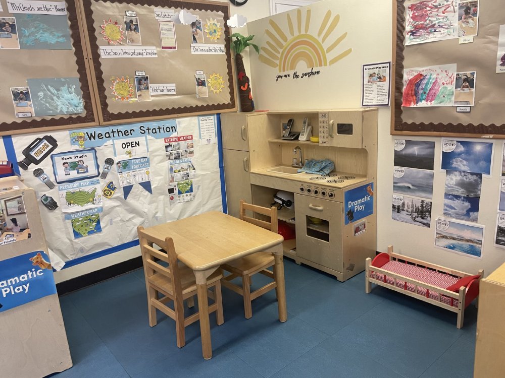 When you walk into one of our pre-K classrooms, you’ll see artwork and writing displayed around the room. Labels are everywhere to help kids connect letters with words. You’ll also see pictures on the walls that reflect the families in our community. Your child will also deepen their knowledge in language, math, science, Spanish, and social skills.