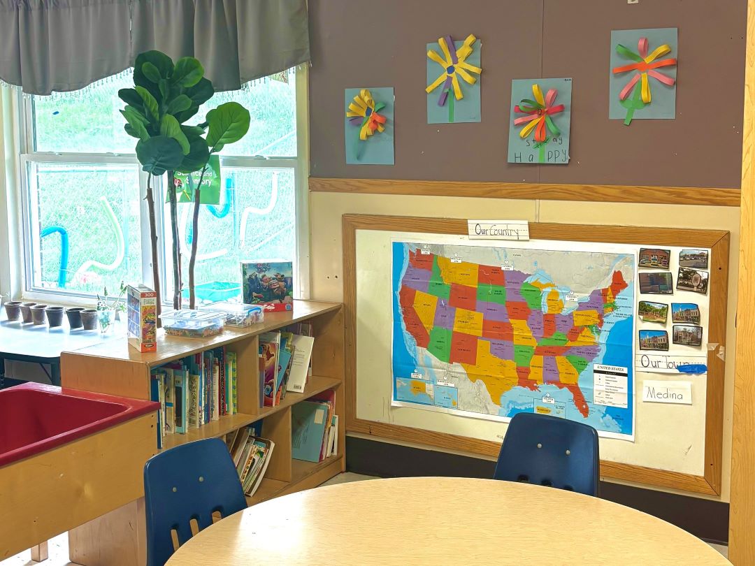 When you walk into one of our pre-K classrooms, you’ll see artwork and writing displayed around the room. Labels are everywhere to help kids connect letters with words. You’ll also see pictures on the walls that reflect the families in our community. Your child will also deepen their knowledge in language, math, science, Spanish, and social skills.
