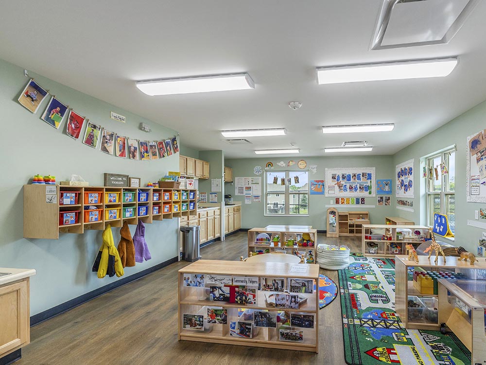 Everything in our toddler classroom is designed for little explorers. That’s because a lot is going on at this age. When your child is wandering all over the place, that means they’re learning and discovering new things every day. We’ll help them explore their interests (and find new ones!) as they play and learn.