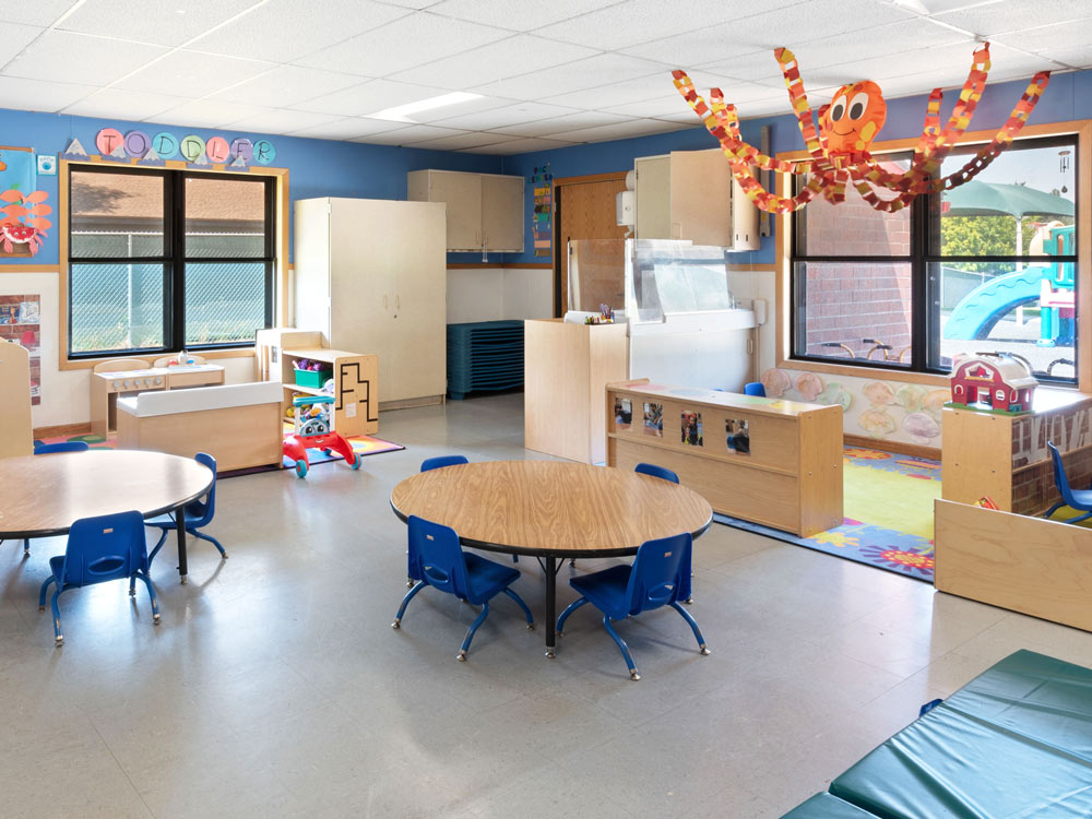 This age is filled with so much wonder and curiosity. That’s why we offer a ton of books and toys and bring artwork down to kids eye level. Children in discovery preschool also begin to learn how we all work together in a classroom. Simple math and science, pretend play, and group play help them get used to a more structured school setting.