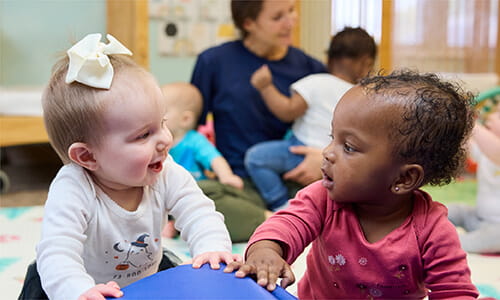 Your baby’s brain is starting to connect with people, places, and things around them. Our research-based curriculum guides this early development by supporting cognitive, physical, and social-emotional growth in important ways.